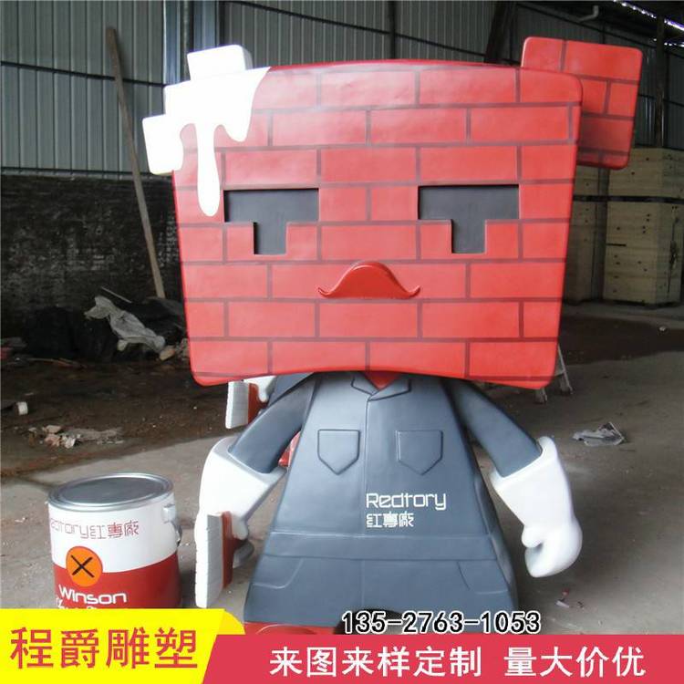程爵雕塑牌的卡通红砖公仔玻璃钢造型可爱耐腐蚀企业ip形象雕塑产品:估价:5000.00,规格:完善,产品系列编号:齐全 发布日期:2025-2-11
